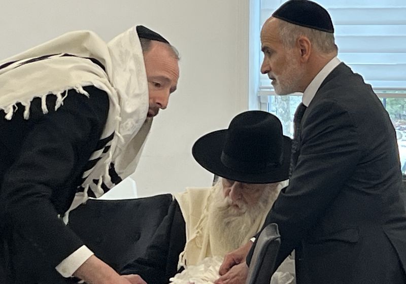 Bris 2007, Deal NJ. A young Rabbi Boruch Mozes (above left wearing Talit) |